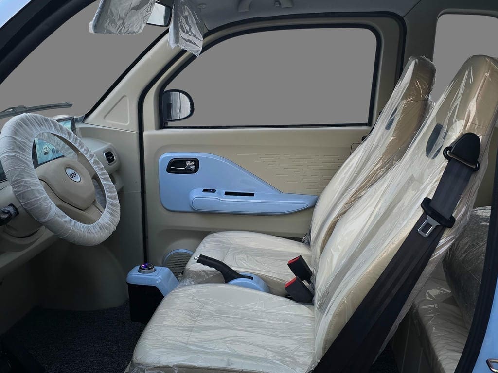 Aerul condiționat cu funcție cald/rece asigură confort termic indiferent de sezon, permițând utilizarea mașinii electrice fără permis pe tot parcursul anului, fie că afară este caniculă sau ger.
